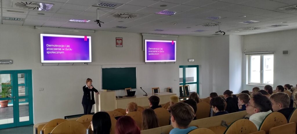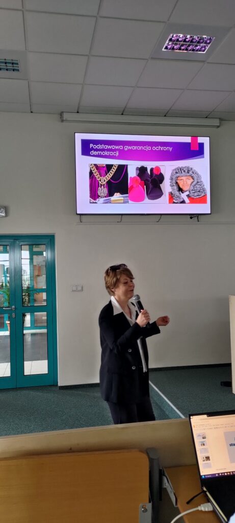 Kolejne spotkanie w ramach projektu „Siła Demokracji” nr 2023-3-PL01-ESC30-SOL-000184131 było wykładem poświęconym zagadnieniom demokracji, który odbył się na wydziale prawa.