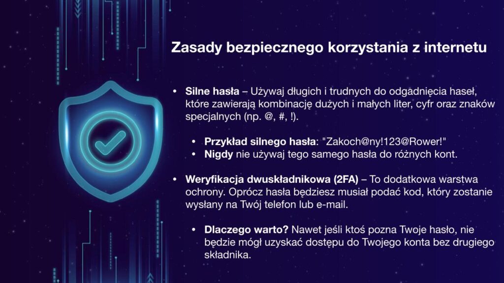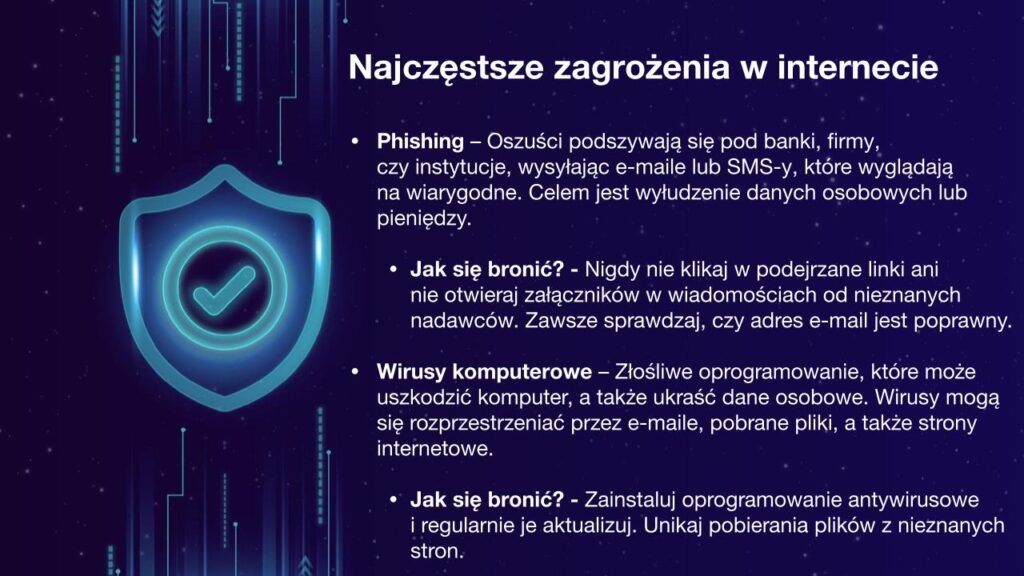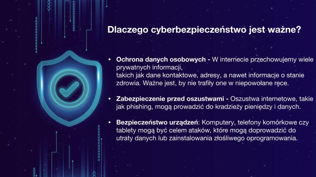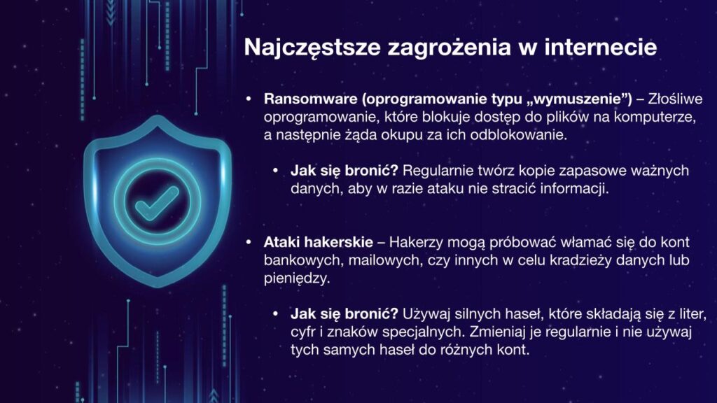 Kolejne zajęcia w ramach projektu „Bezpieczni w sieci” nr 2024-3-PL01-ESC30-SOL-000282674 poświęcone były podstawom cyberbezpieczeństwa. To temat niezwykle ważny, zwłaszcza w czasach, gdy coraz częściej korzystamy z Internetu do kontaktu z bliskimi, robienia zakupów czy obsługi spraw finansowych.