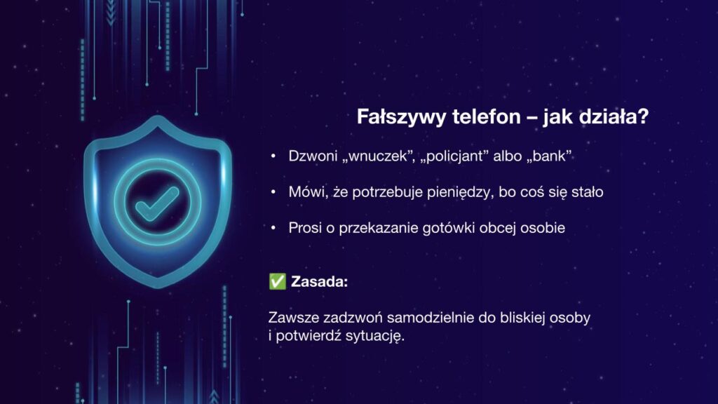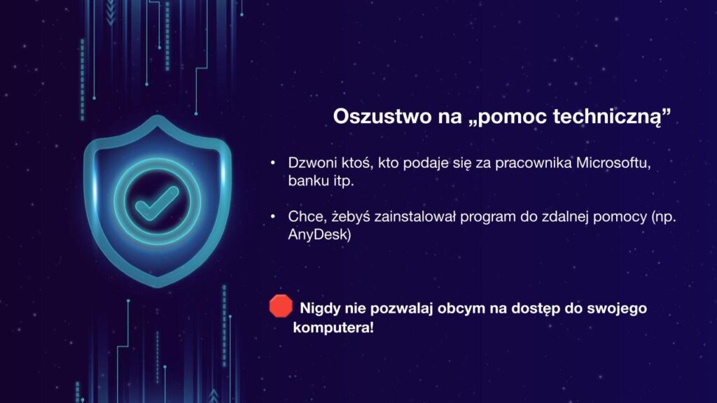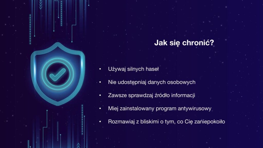 Podczas zajęć uczestnicy poznali także praktyczne sposoby ochrony swoich danych osobowych oraz zasady bezpiecznego poruszania się w sieci. Omówiliśmy również, co zrobić w sytuacji, gdy padniemy ofiarą oszustwa – gdzie zgłosić zdarzenie i jakie kroki podjąć, aby ograniczyć skutki zagrożenia.