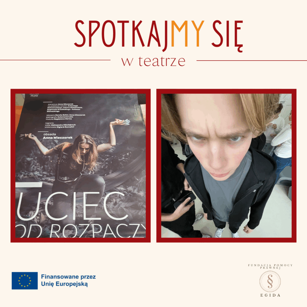 Uczniowie odwiedzili Teatr Lalki i Aktora, gdzie obejrzeli monodram „Uciec od rozpaczy. Życie romantyczne zamknięte w monodramie”. Wyjście odbyło się w ramach projektu „SpotkajMY się w teatrze” nr 2024-1-PL01-ESC30-SOL-000233242 i stało się ważnym momentem wprowadzającym młodzież w świat teatralnej interpretacji literatury.
